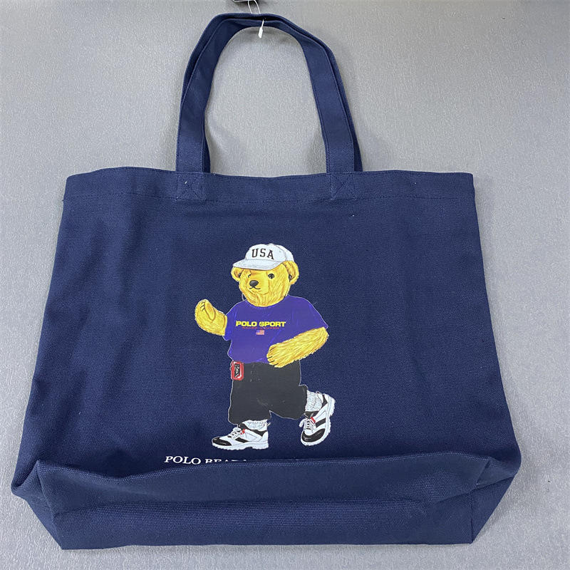 Bolso de mano con patrón de dibujos animados PL, bolso de compras diario informal, bolso de lona de hombro con estampado de moda azul