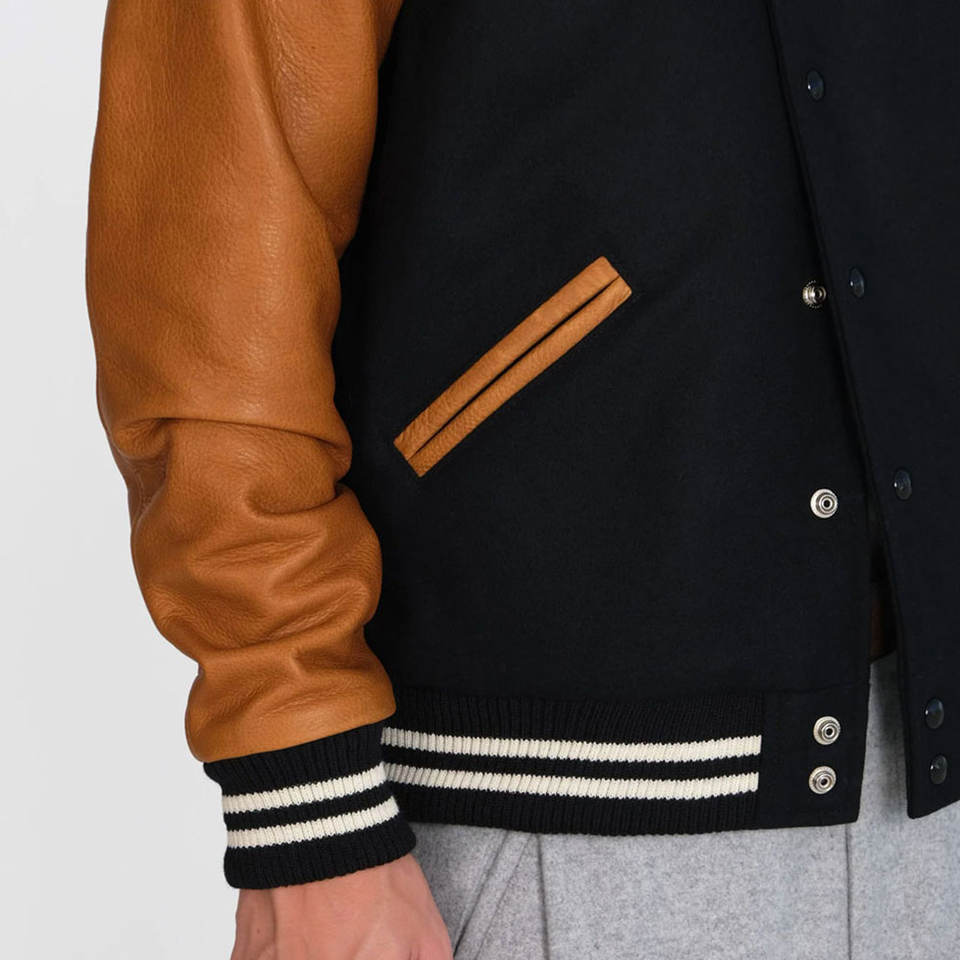 Nombre del producto:Chaqueta Letterman de Cuero con Mangas