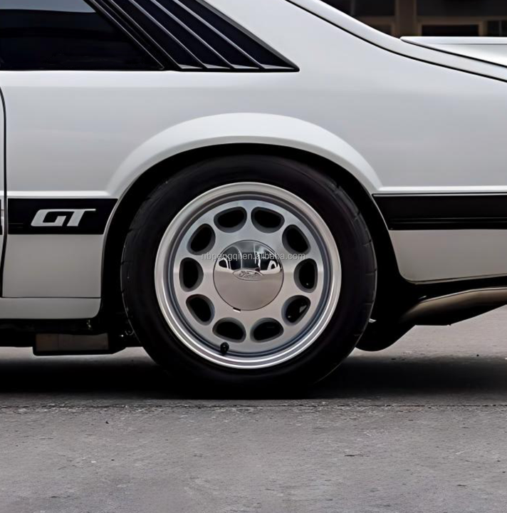 Rueda Forjada Monobloque Multirradio con Acabado Mate Plateado y Tapa Central Plateada Pulida para Ford Mustang GT