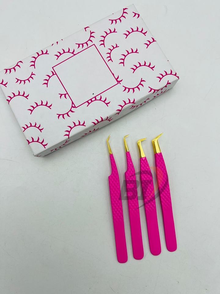 Pinzas de extensión de pestañas de etiqueta privada personalizadas de color rosa fuerte, acero inoxidable sostenible probado a mano para Aplicación de pestañas
