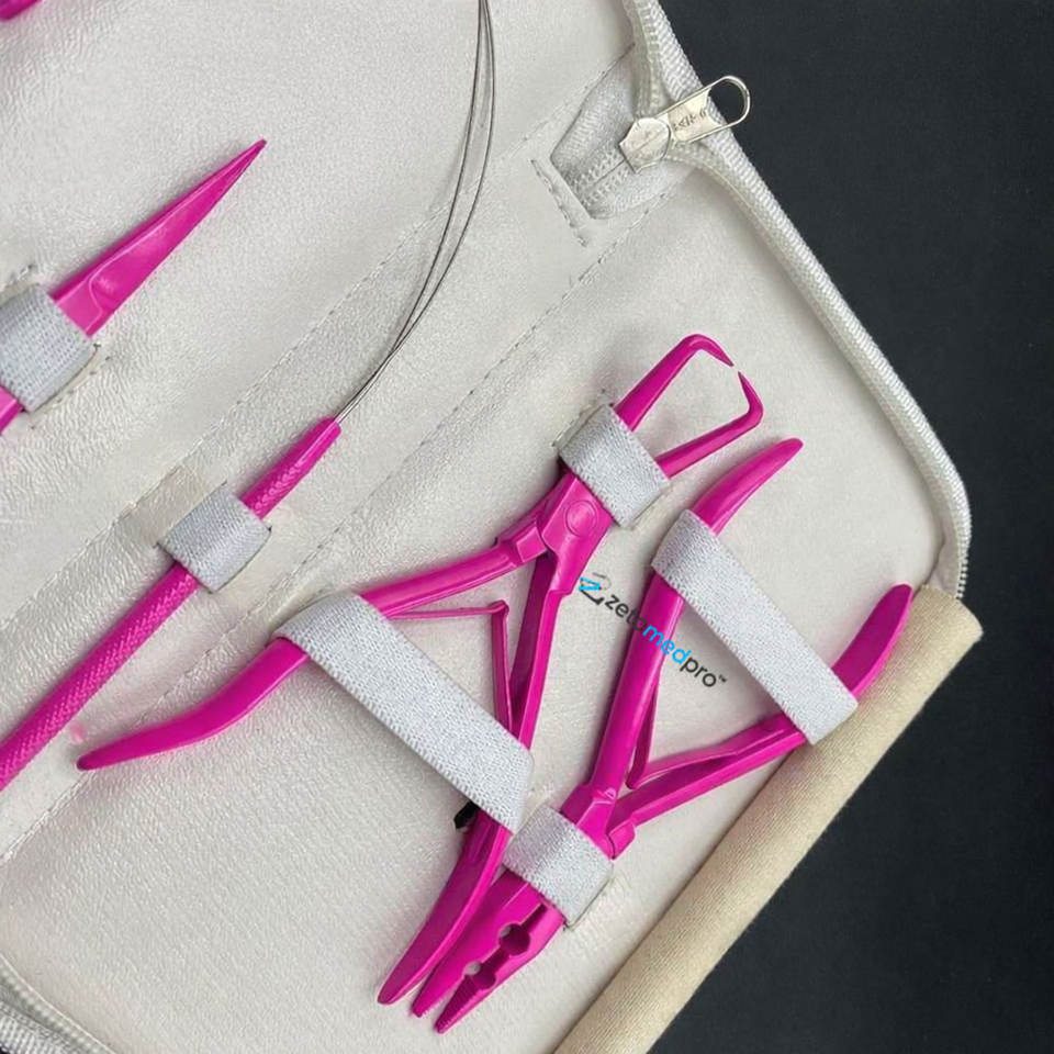 Kit de Herramientas para Extensiones de Cabello Rosa Intenso, Alicates de 2 Orificios, Alicates Abrecuentas de Acero Inoxidable Sostenible con Clips Pequeños, Tijeras y Lazo