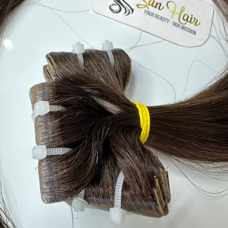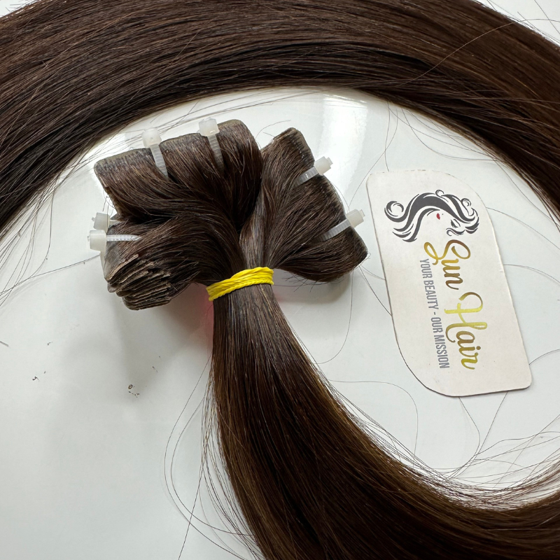 100% Extensiones de cabello vietnamita real Grado superior Sin procesamiento químico SDD Recto #3 Color Fácil de usar Diseño de cinta delgada Suelta