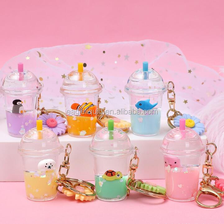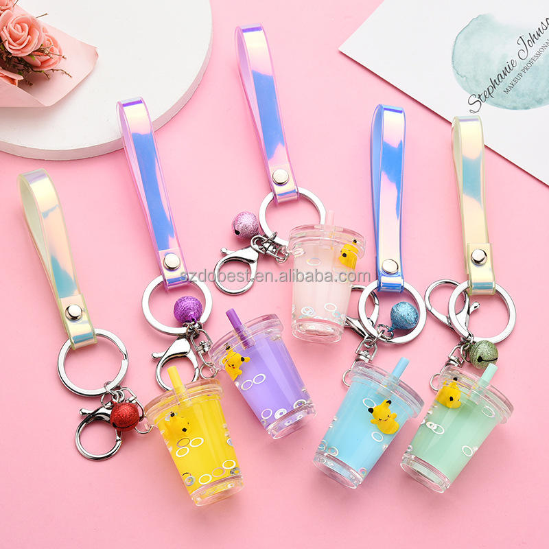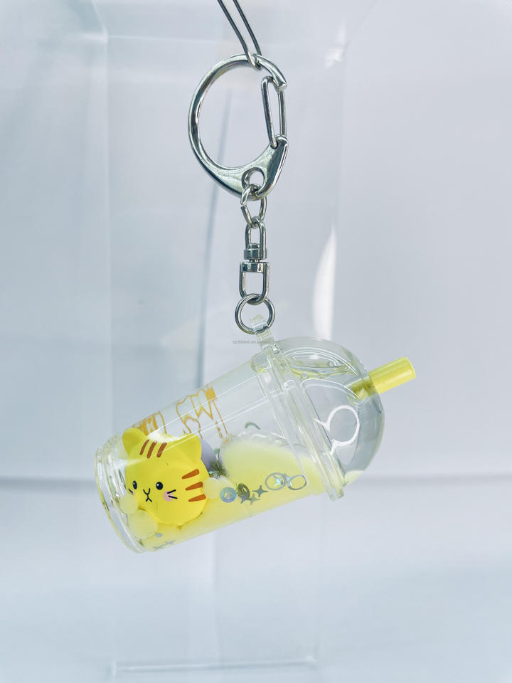 Gran Promoción Llavero de Acrílico con Líquido Flotante de Burbujas, Diseño de Osito y Taza de Té con Leche, Artesanal