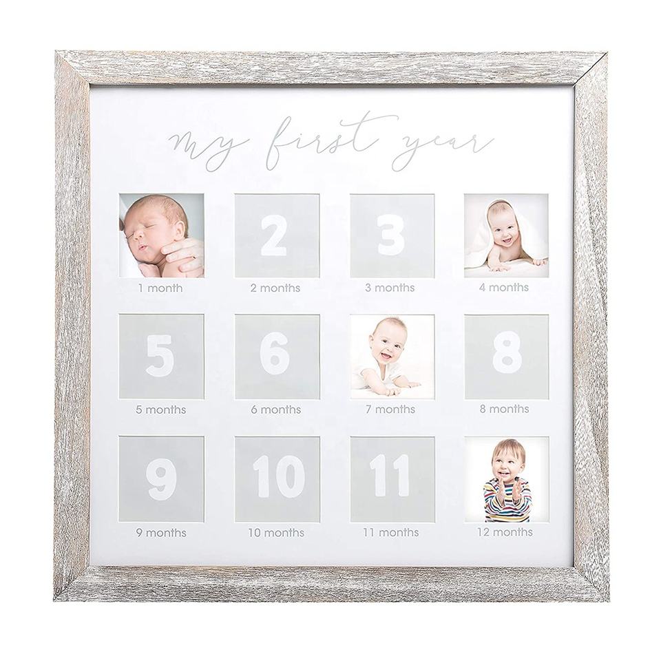 Venta caliente 10x17 madera blanca moderna niño niña mi primer año foto momentos conmemorativos bebé 12 meses recuerdo bebé marco de fotos