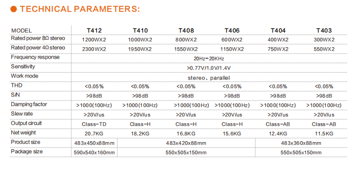 Potencia Nominal:8ΩEstéreo: 800WX2, 4ΩEstéreo: 1550WX2