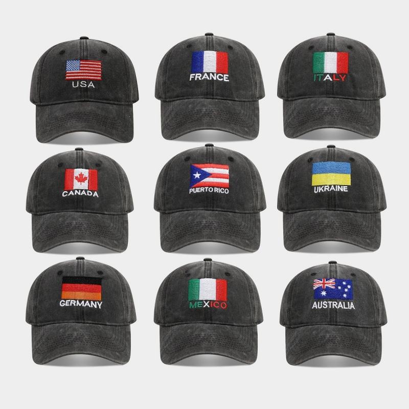 Gorra de Béisbol de Algodón Bordada con Logotipo Personalizado 2026, 6 Paneles, Negra, Unisex, Protección Solar, Gorra Snapback con Bandera de Fans