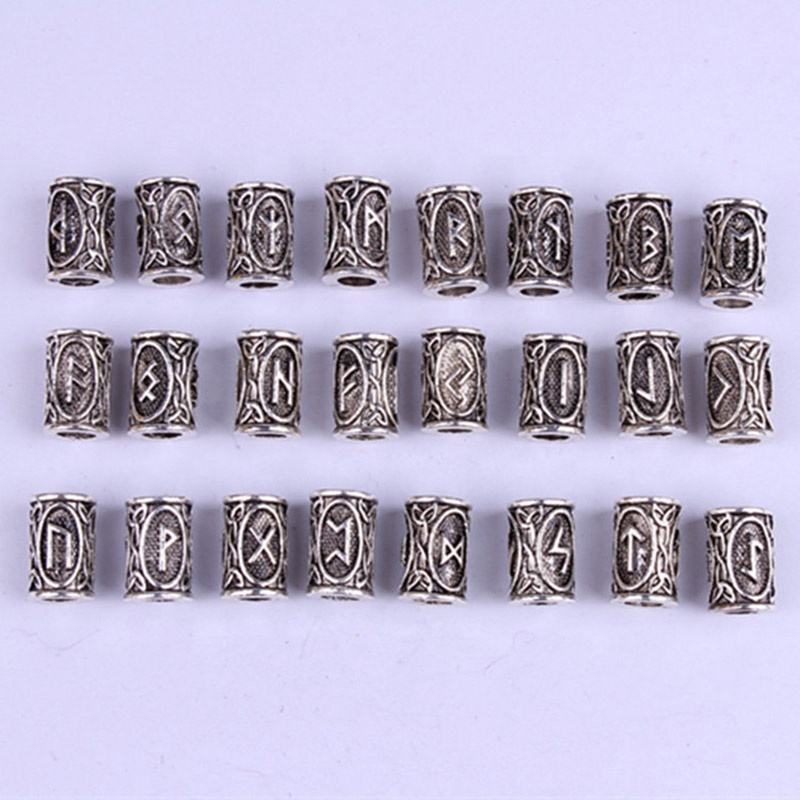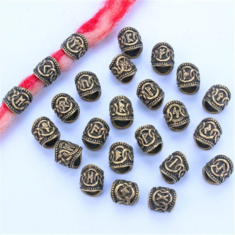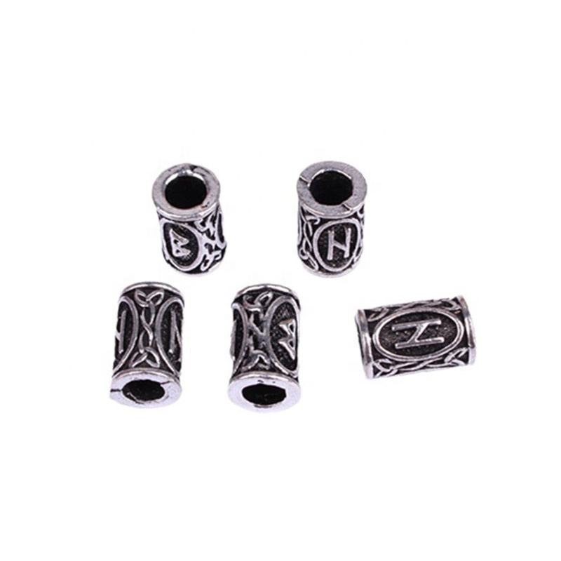 Gran oferta, accesorios de manguito trenzado de pelo de runa vikinga de 24 letras para anillos de Rastas, cuentas de pelo para trenza sintética