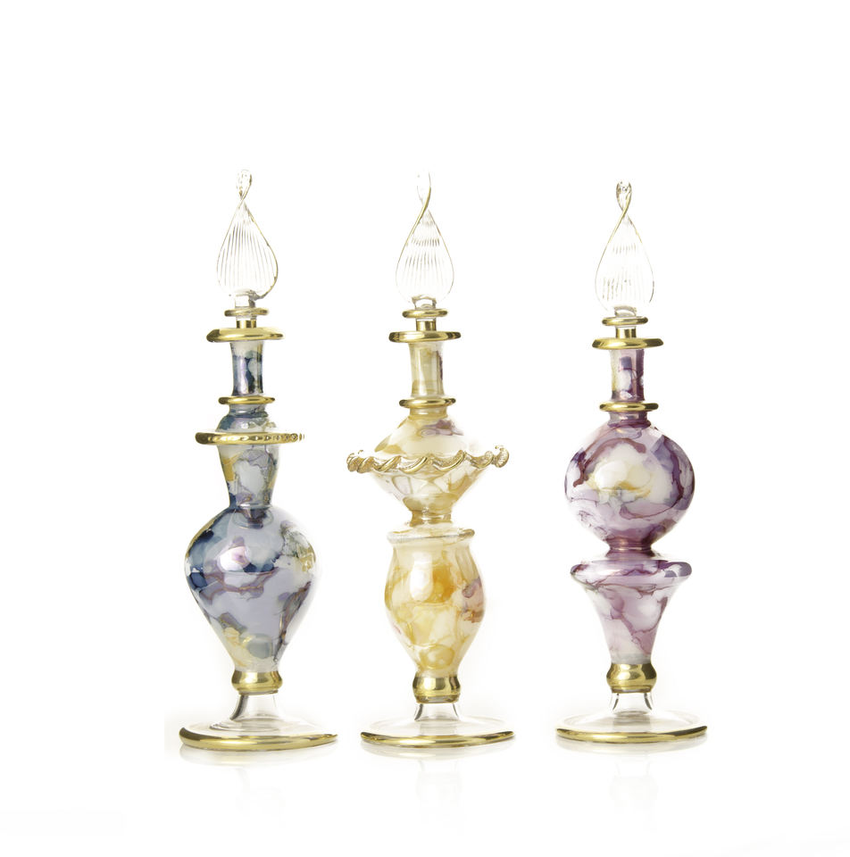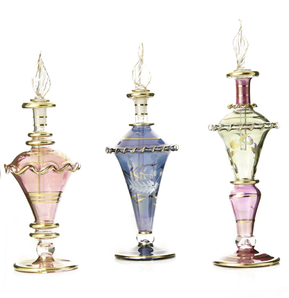 Gran oferta, botellas de Perfume de vidrio de inspiración egipcia Premium de 30ML, técnica soplada hecha a mano, recuerdos de pintura de oro líquido
