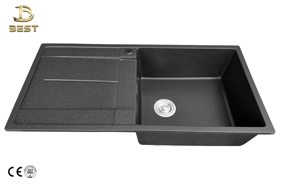 Gran oferta, fregadero de cocina compuesto de cuarzo estilo granito de 34 pulgadas, diseño empotrable con grifo de doble cuenco y función de cuenco único