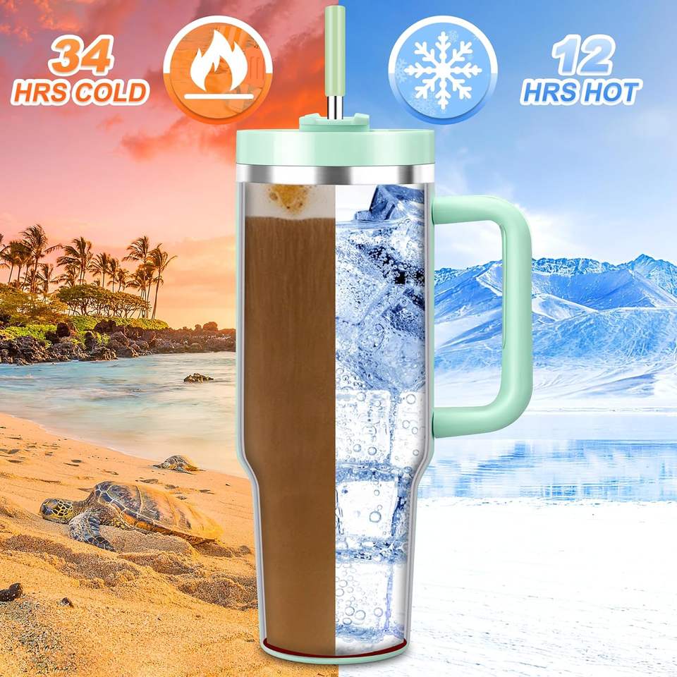 Gran oferta, vaso con asa de aventura de 40 OZ con asa y pajita, taza de viaje reutilizable al vacío, nuevo diseño en Stock