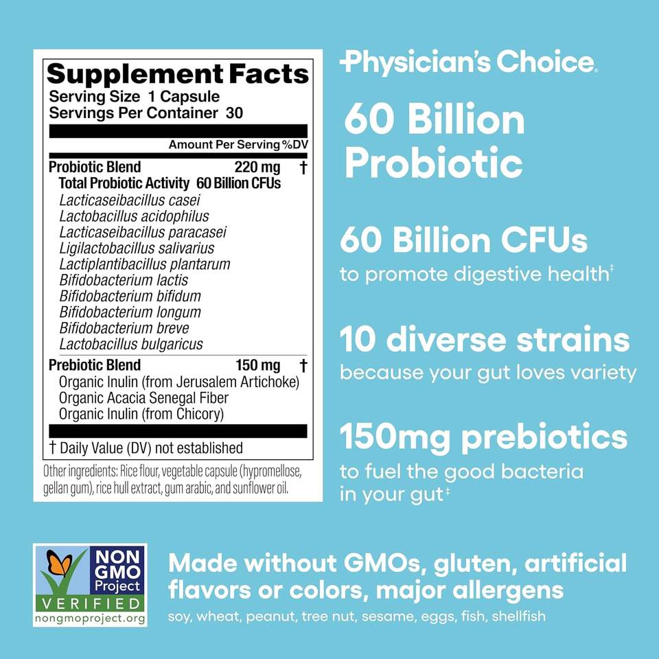 Cápsulas de Probióticos para la Digestión con 50 Mil Millones de UFC, Cápsulas Orgánicas de Prebióticos Digestivos, Suplemento para la Salud Intestinal