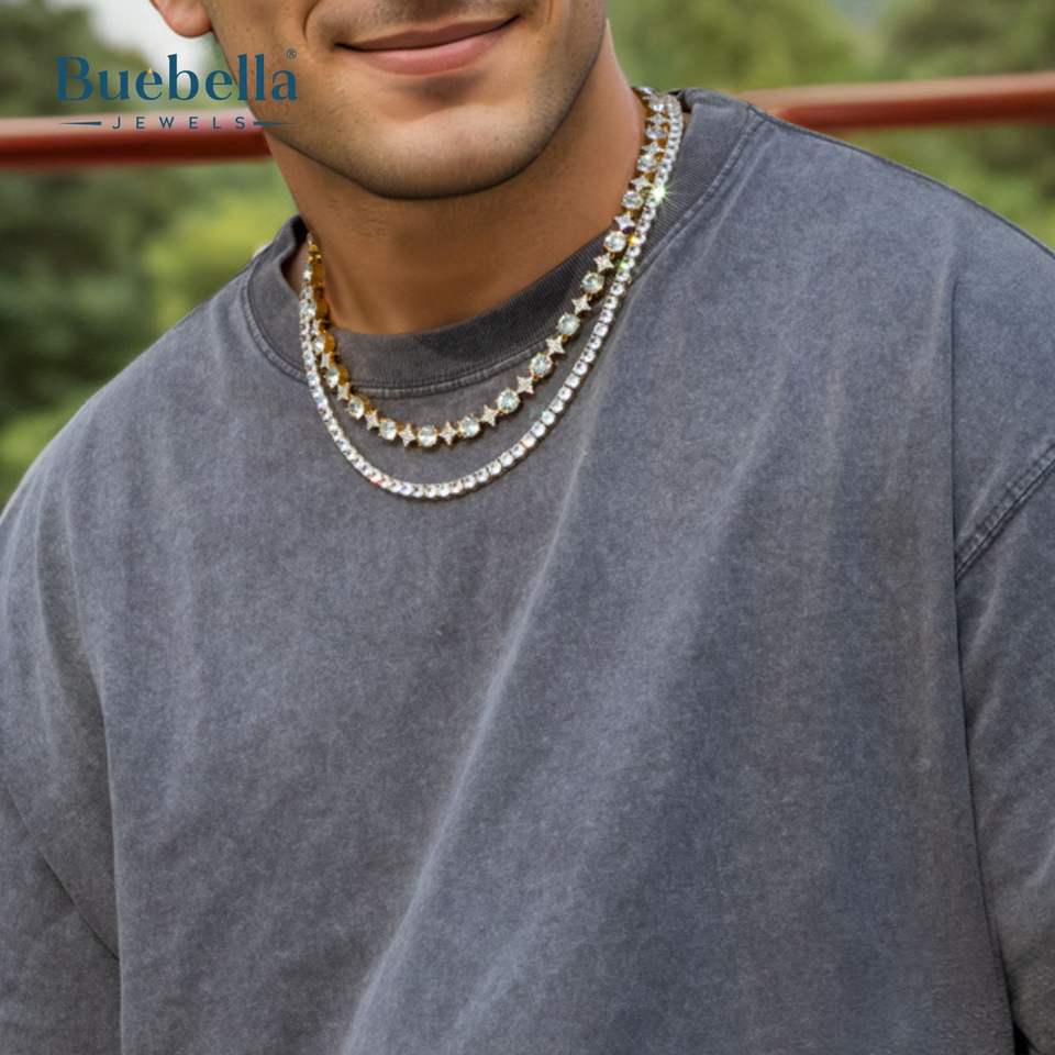 Gran oferta, collar de estrella cuadrangular helada de 8mm para hombres, oro de 14K, joyería fina chapada en plata 925, collares de moissanita, collar caliente