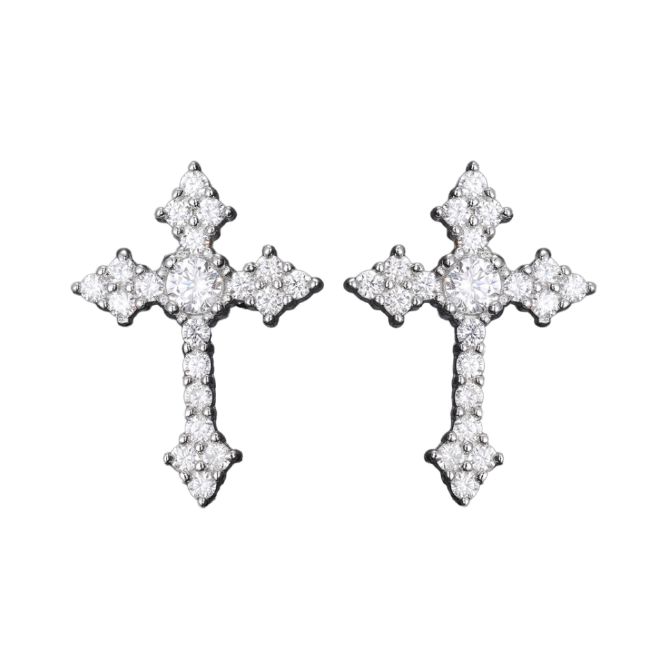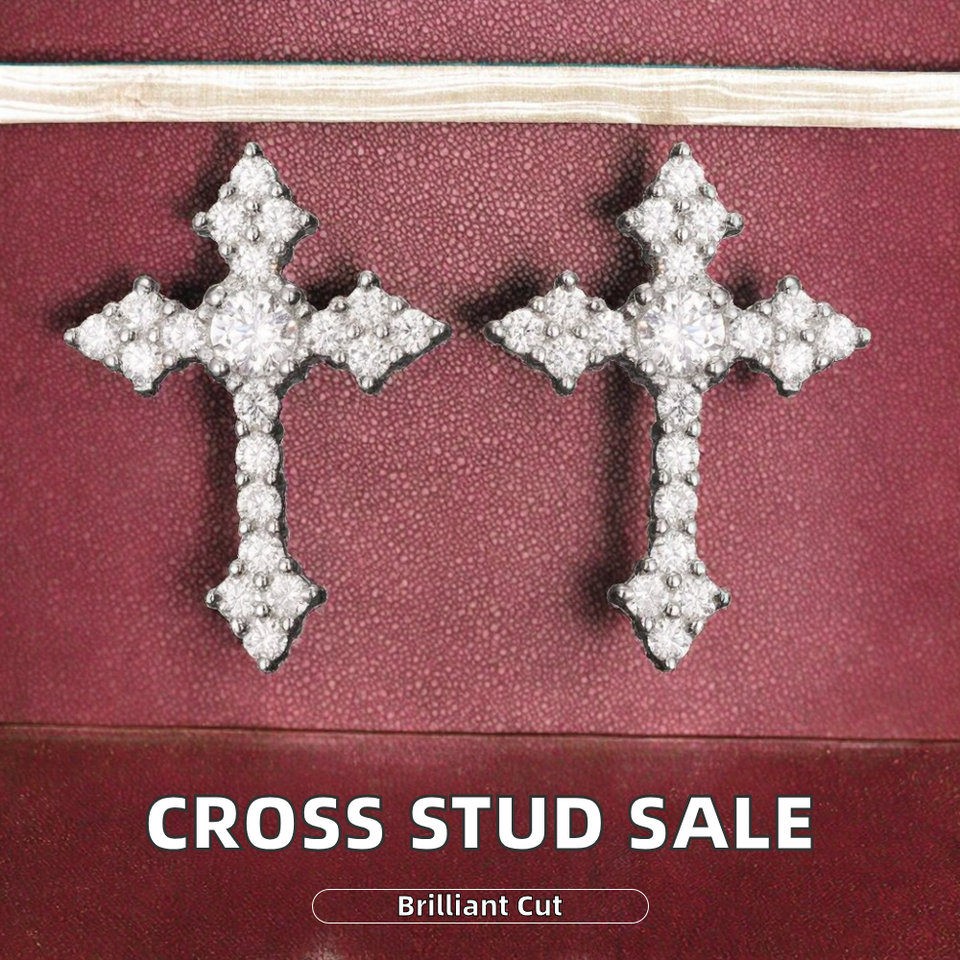 Pendientes de Plata 925 con Diseño de Cruz, Chapados en Oro, con Moissanita GRA, Joyería de Moda a un Precio Increíble