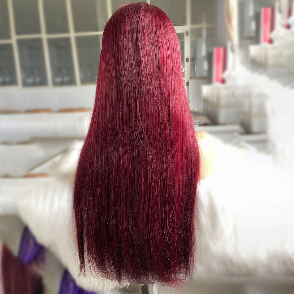 Gran oferta 99J Borgoña recto encaje Frontal pelucas de cabello humano 13x4 transparente HD encaje Frontal peluca 180% pelucas de cabello humano de color rojo
