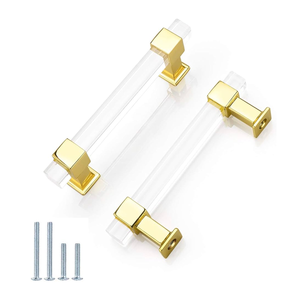 Gran oferta manija de muebles de acrílico y latón diseño admirable accesorio para el hogar manija de puerta de armario de cajón de acrílico para la venta