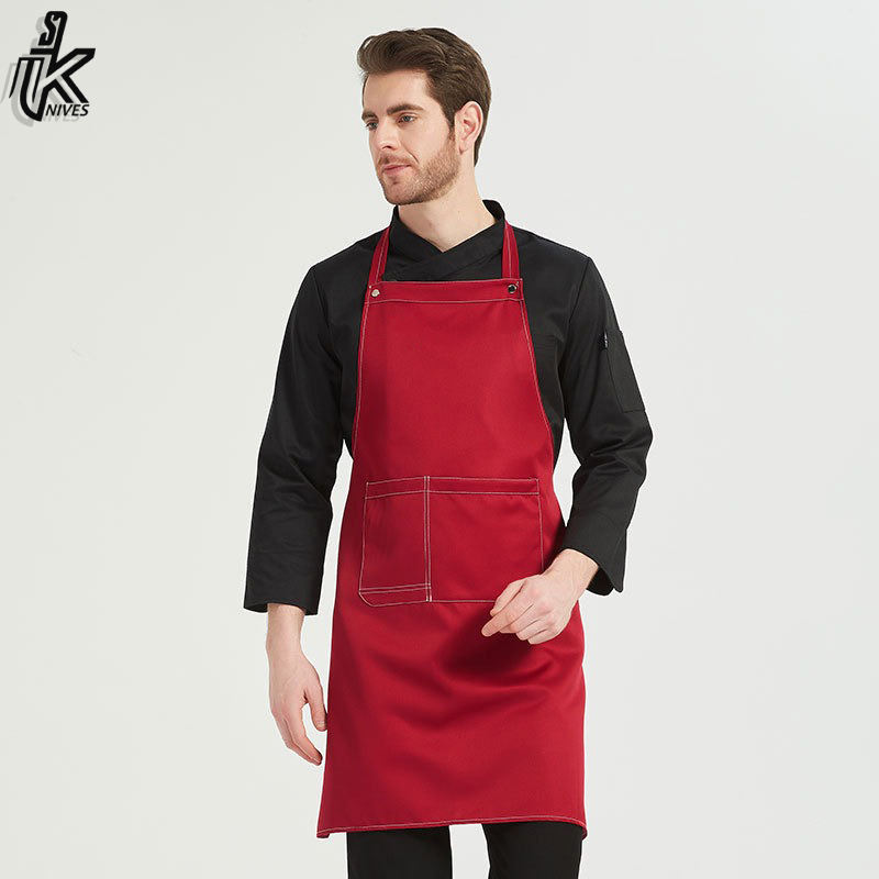 Delantal de cocina ajustable de gran oferta, LONA DE 3 bolsillos y tela de algodón personalizado con dos bolsillos, venta directa al por mayor