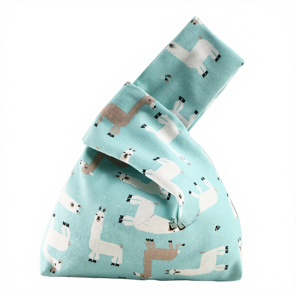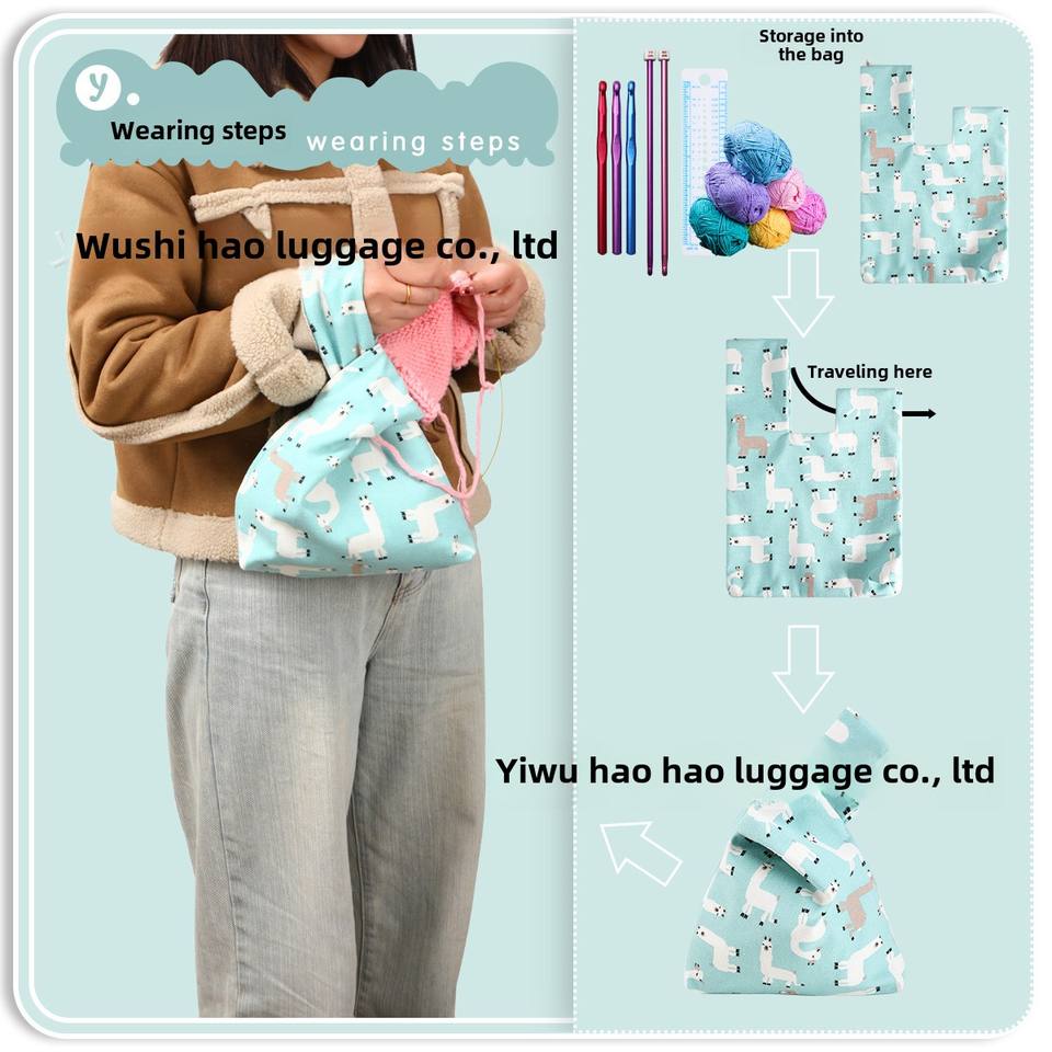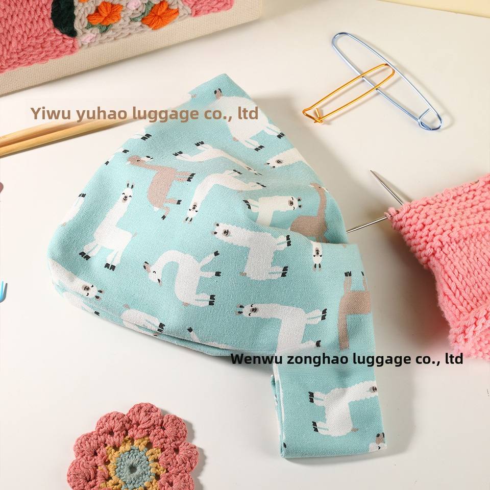 Gran oferta, bolsa de muñeca azul con patrón de alpaca, bolsa de almacenamiento de hilo portátil pequeña de algodón puro, bolsa de almacenamiento de hilo