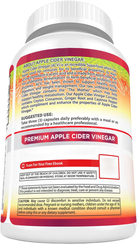 Cápsulas de Vinagre de Sidra de Manzana en Oferta, Cápsulas de Desintoxicación y Limpieza, Aceleran el Metabolismo, Pérdida de Peso, Cápsulas de Cuidado de la Salud con Vitamina ACV