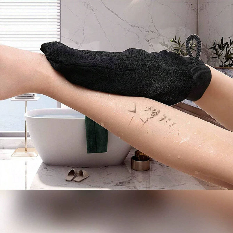 Gran oferta, guantes gruesos negros de doble cara para toallas de baño, exfoliación fuerte para eliminar la piel muerta