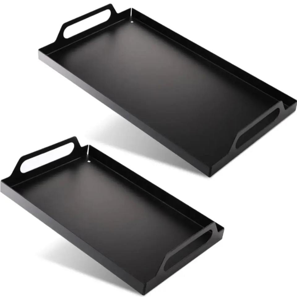 Gran oferta, bandeja de servicio Rectangular de Metal negro, bandeja decorativa ecológica para encimera de cocina y decoración de comedor