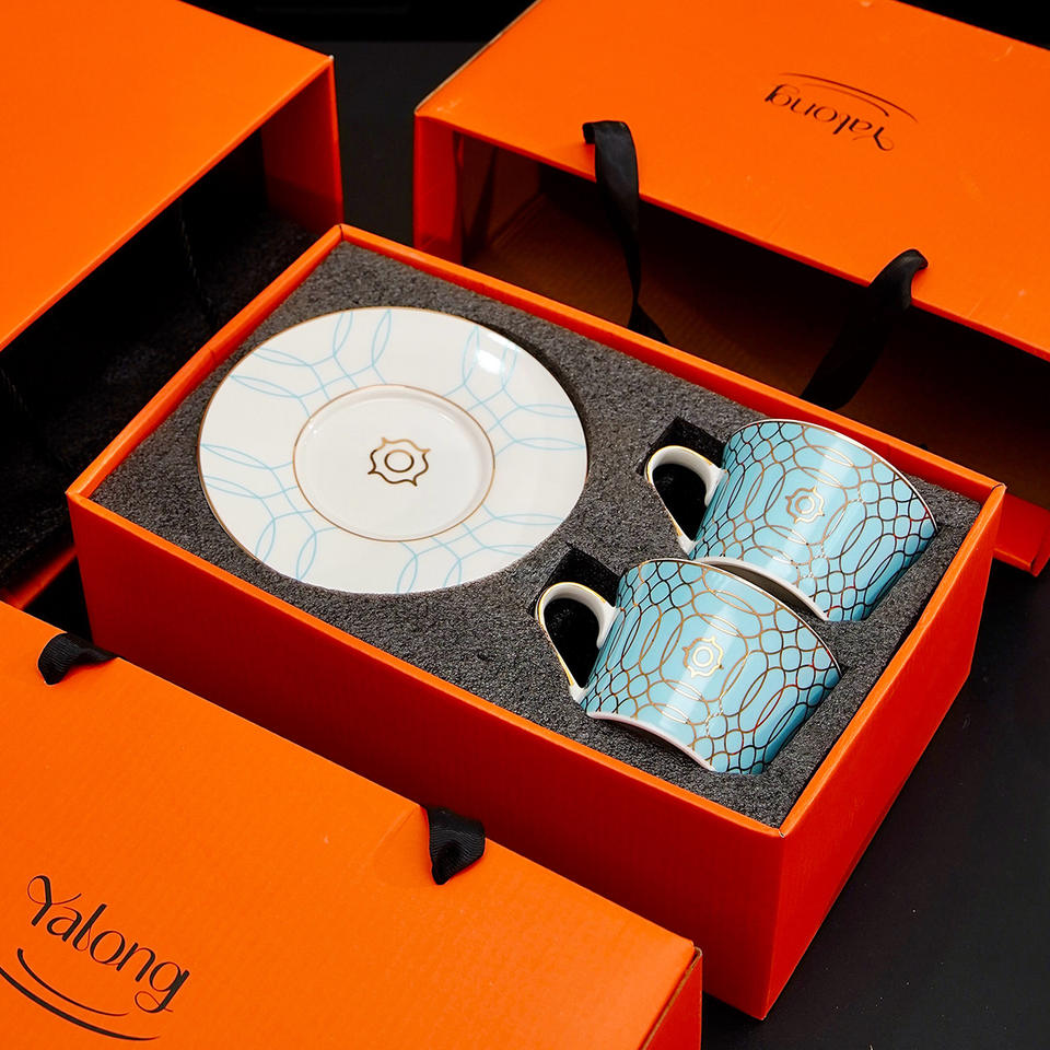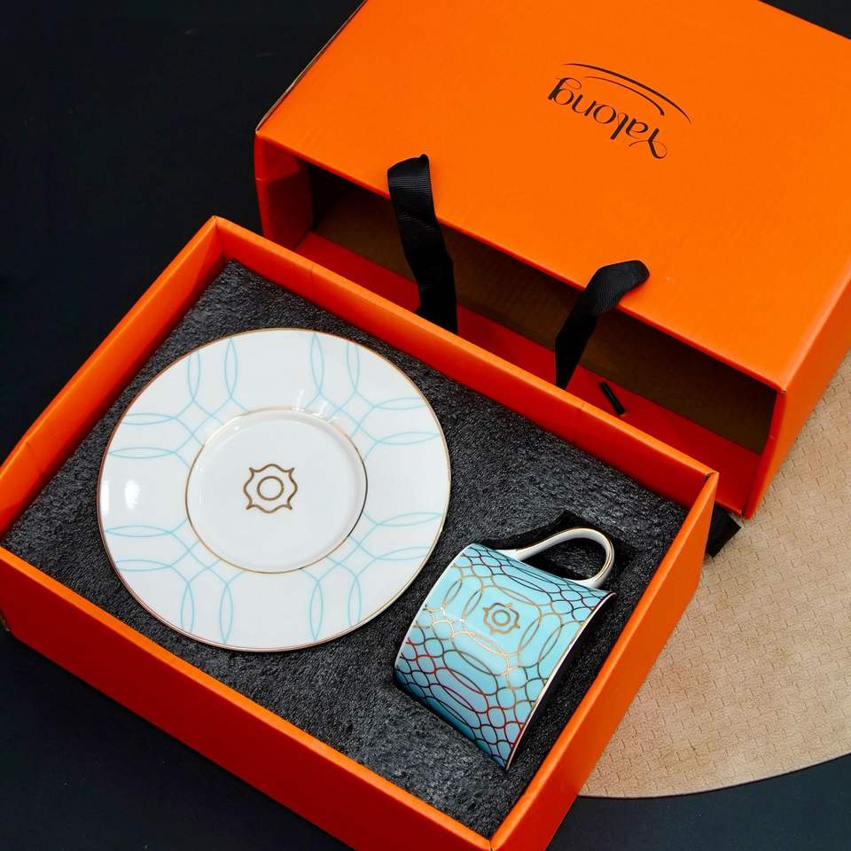 Juego de Tazas de Café de Cerámica Azul en Oferta, Juego de Platos para Té Inglés de Alta Calidad