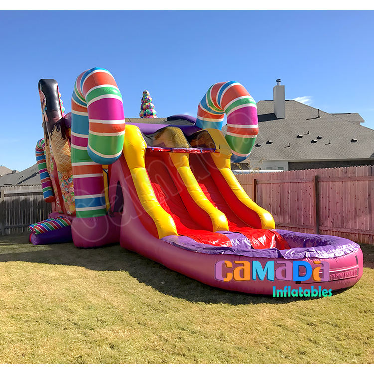 Gran oferta, casa de rebote inflable inspirada en dulces, gorila para exteriores para niños con tobogán de agua húmedo/Seco, Combo, castillo hinchable para saltar