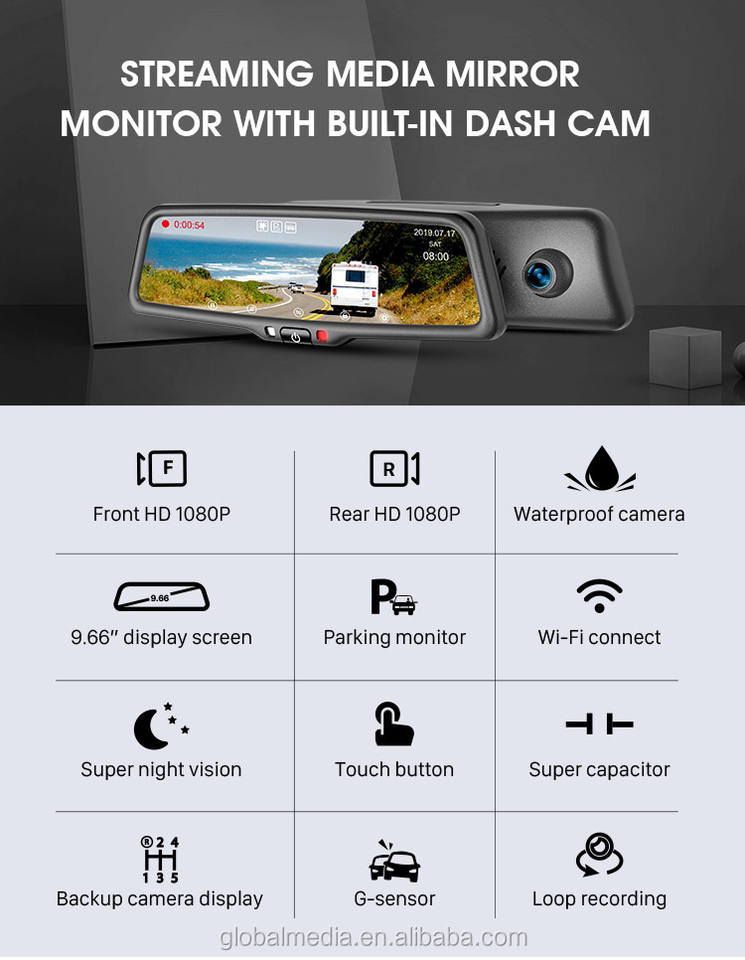 Espejo retrovisor de coche de gran oferta con espejo retrovisor automático de supercondensador con visión nocturna estupenda