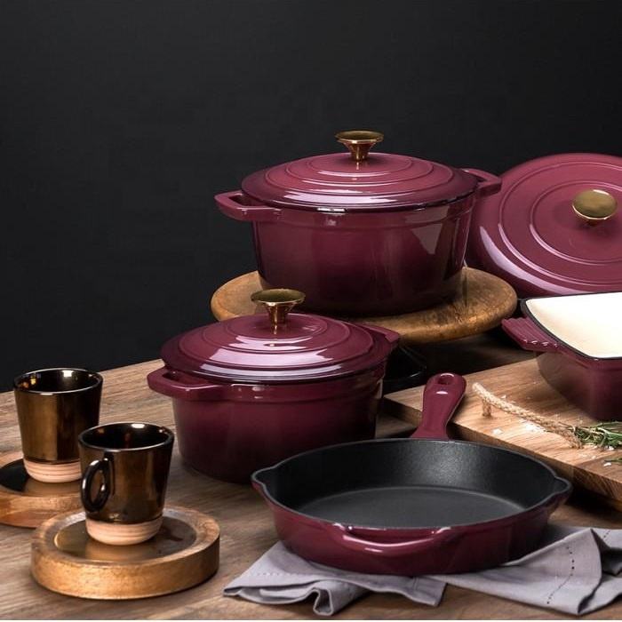 Nombre del producto:Amazon Venta caliente de hierro fundido antiadherente esmaltado conjunto de utensilios de cocina de hierro fundido