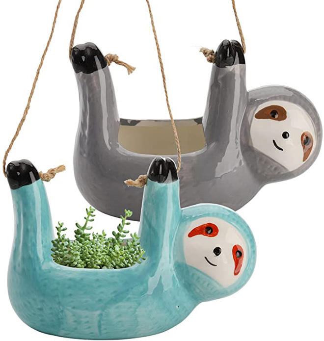 Maceta Colgante de Cerámica con Forma de Perezoso para Plantas de Interior y Exterior, Linda Maceta para Plantas Suculentas, Decoración del Hogar