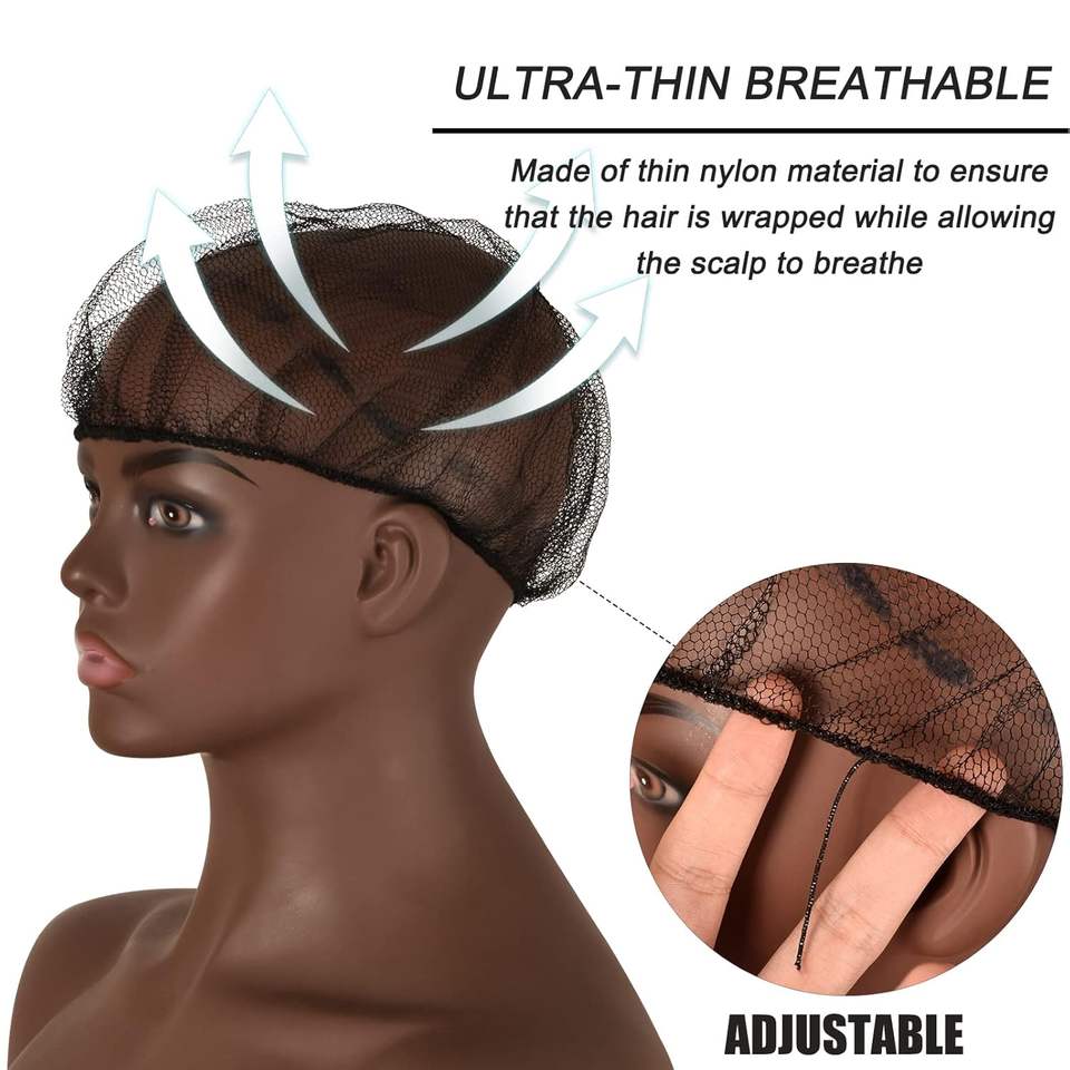 Gran oferta, redes para el cabello baratas de 22 pulgadas, malla elástica Invisible elástica para servicio de comida, moño de ballet, dormir, mujeres y peluca