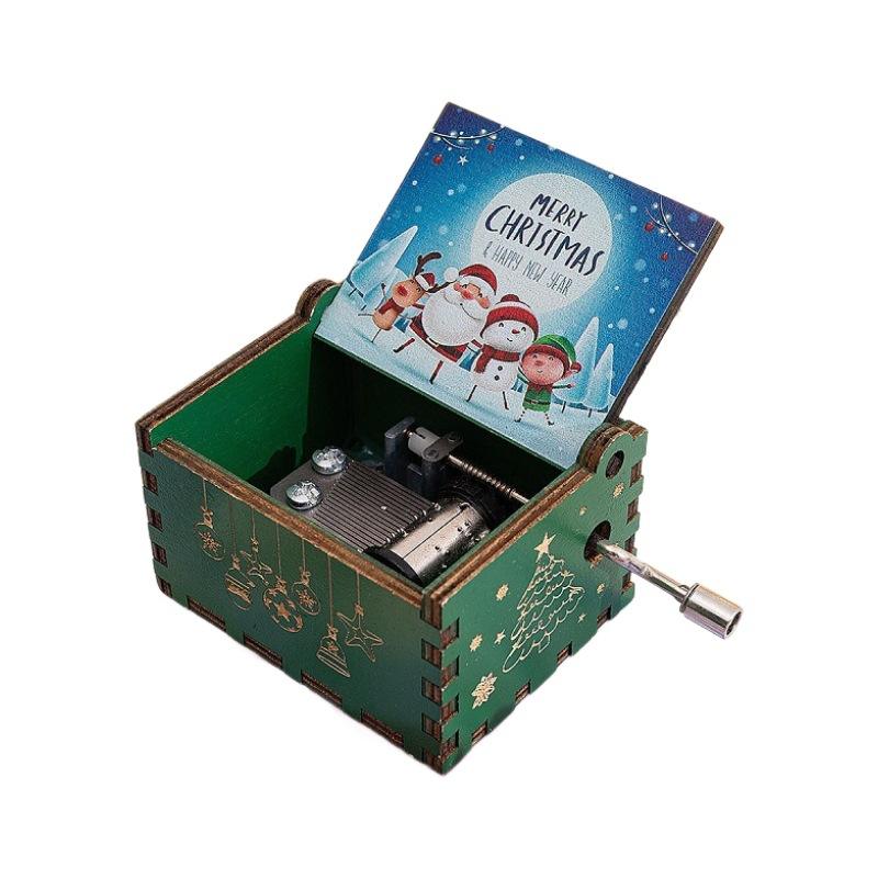 Venta caliente precio barato logotipo personalizado estilo retro mini manivela caja de música de madera regalo de música de Navidad