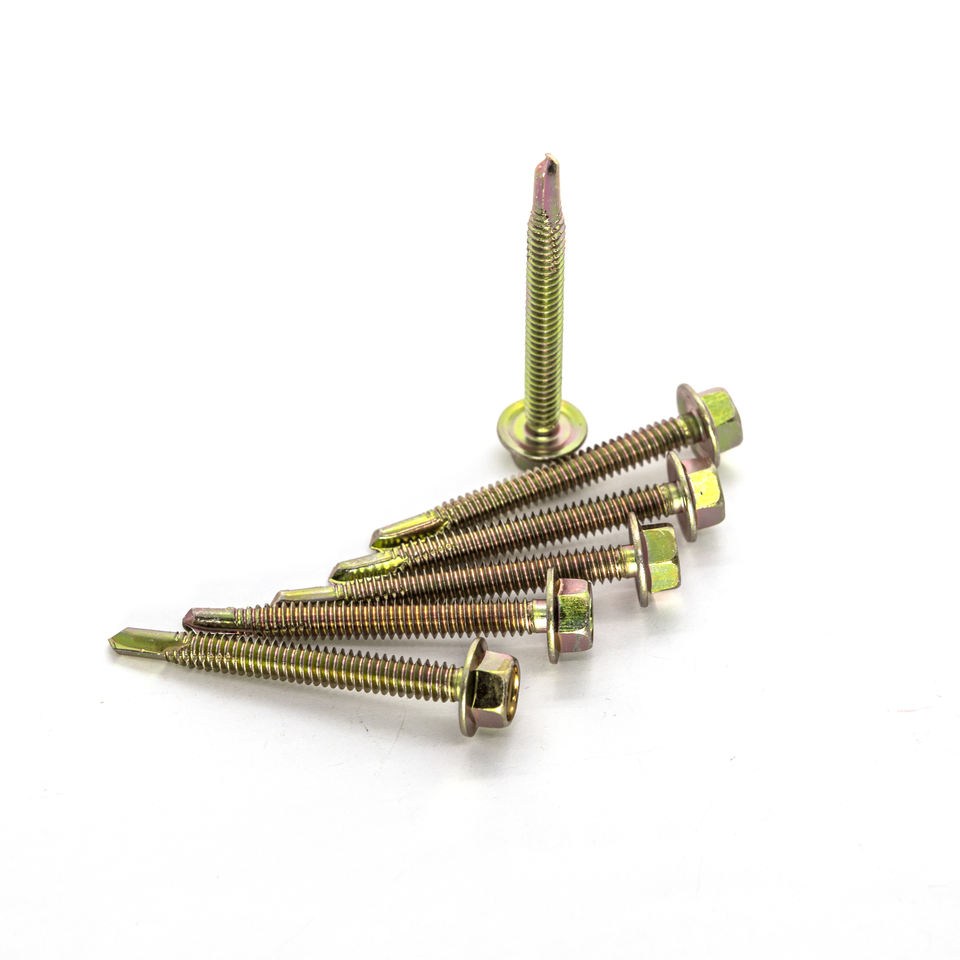 Tornillos Autoperforantes de Cabeza Hexagonal Clase 8 para Construcción y Techos con Acabado de Zinc, Material de Acero y Latón, Medida en Pulgadas