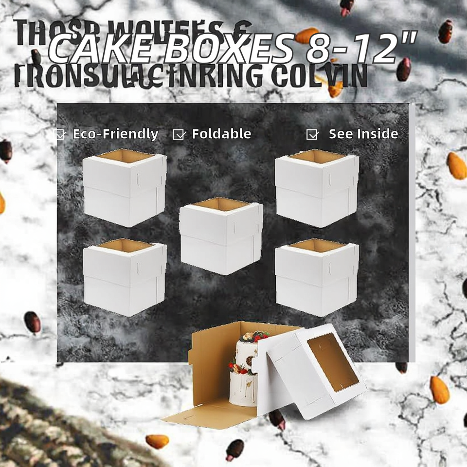 Cajas de Pastel Cuadradas Blancas Clásicas en Oferta, Reciclables, Plegables, de Cartón Corrugado, con Forro de Esponja, Cierre Magnético, Varios Tamaños 8-12