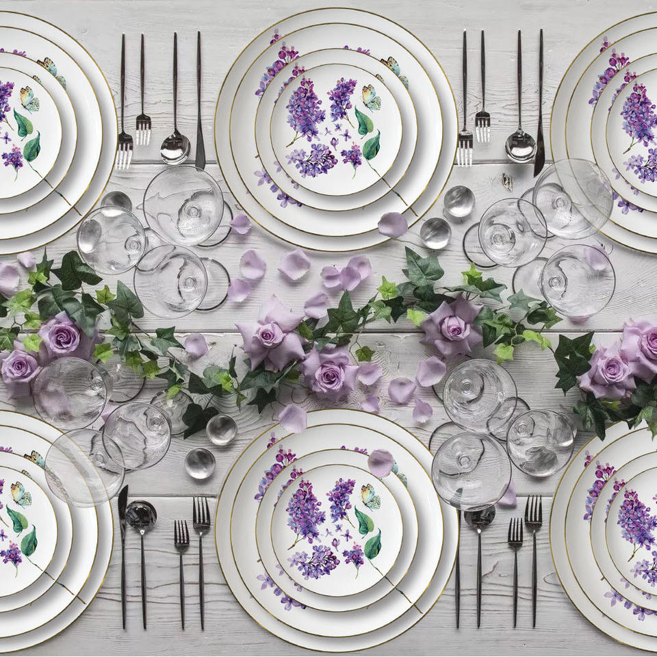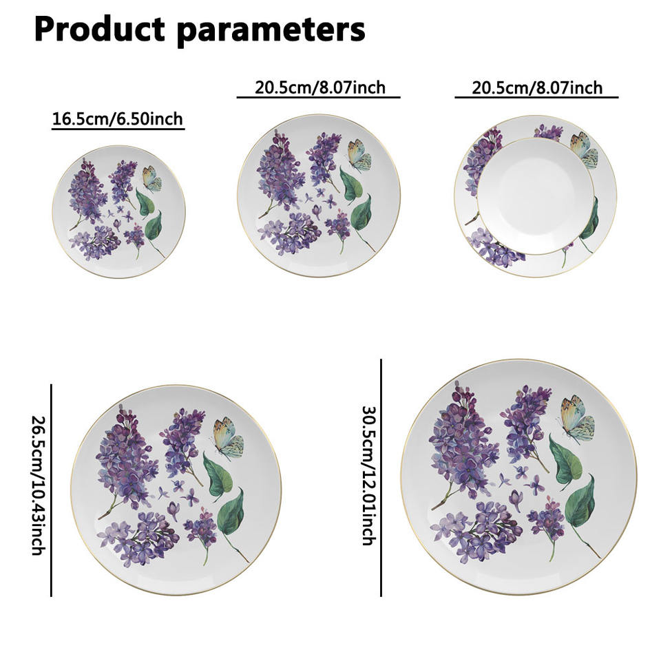 Nombre del producto:Venta caliente púrpura floral cargador placa cena placa conjunto