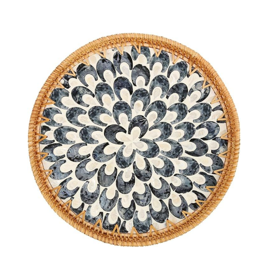 Plato de Cerámica de Ratán Hecho a Mano, Plato para Cena, Plato de Mesa, Plato Tejido de Ratán Real