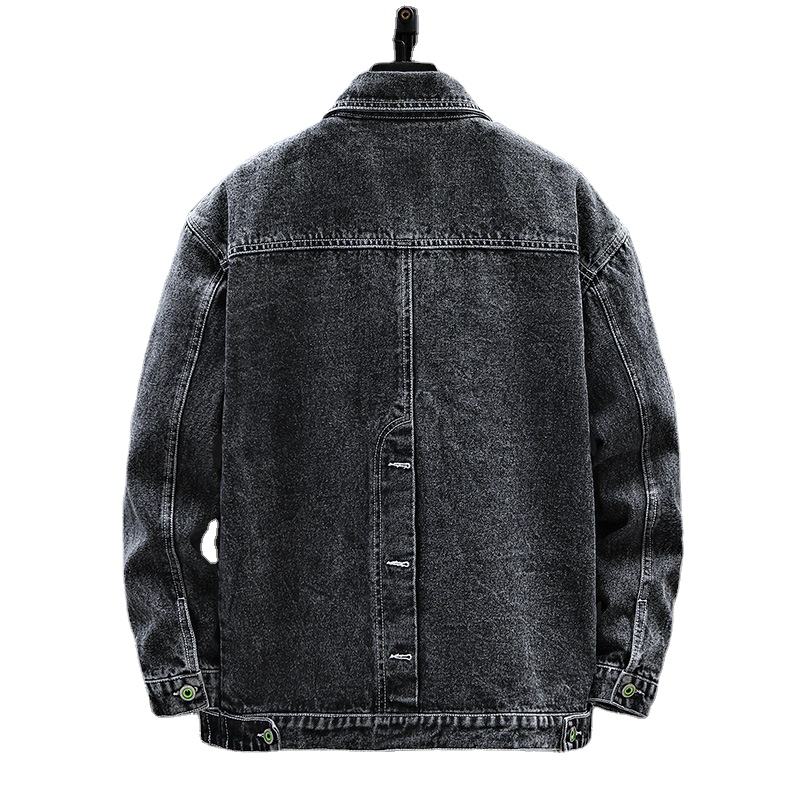 Gran oferta, Chaquetas vaqueras lavadas Vintage de gran tamaño con cuello vuelto de estilo retro informal ajustado negro personalizado