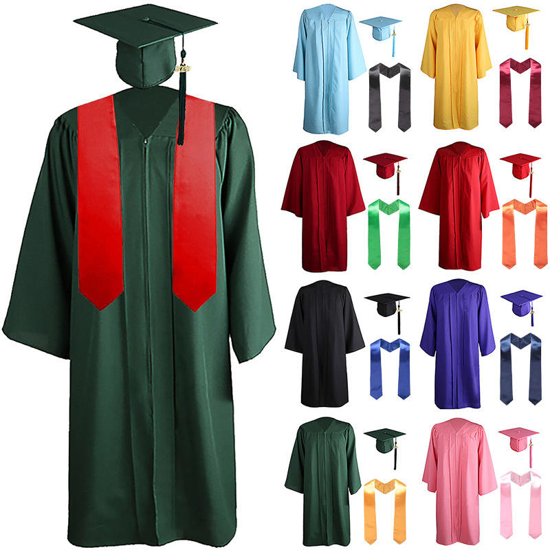 Gran oferta, logotipo personalizado, ropa profesional para adultos, conjunto de vestido de gorra de graduación de soltero académico mate, uniforme escolar