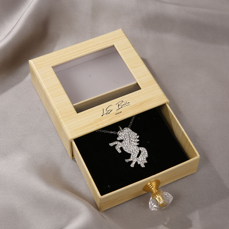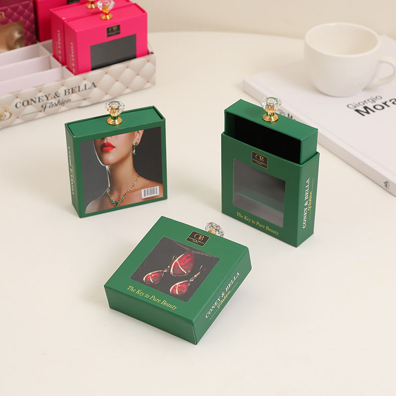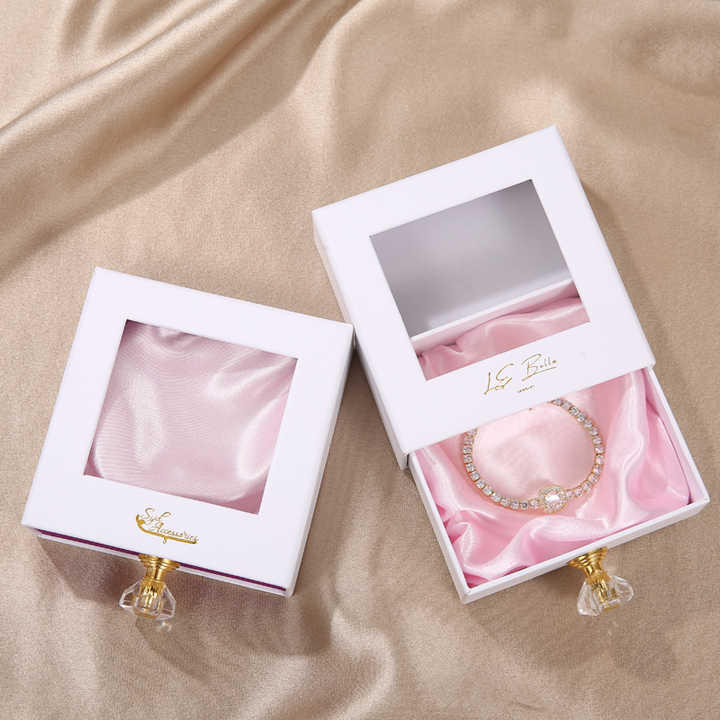 Caja de Joyería con Logotipo Personalizado, Cajón para Anillos, Asa de Diamantes, Ventana de PVC, para Collares, Pendientes, Pulseras, Embalaje de Regalo