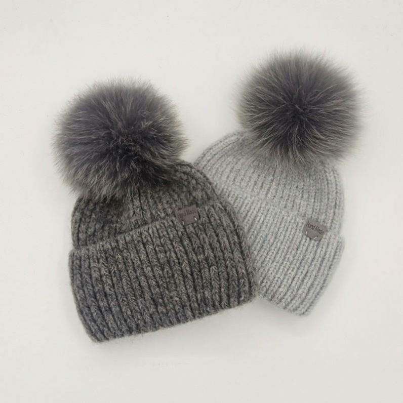 Gorro de Lana Tejido con Logotipo Personalizado, Gorros de Invierno con Pompón de Piel Desmontable, Gorros de Lujo con Pompón