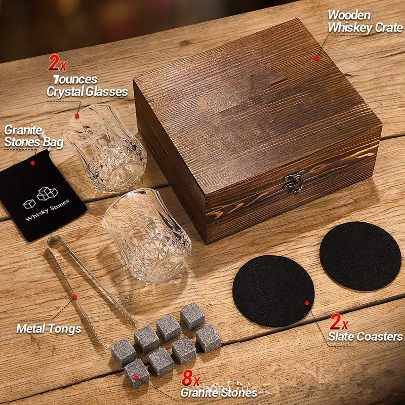 Nombre del producto:Logotipo personalizado Whisky Piedras de enfriamiento y vasos de whisky Set de regalo en caja