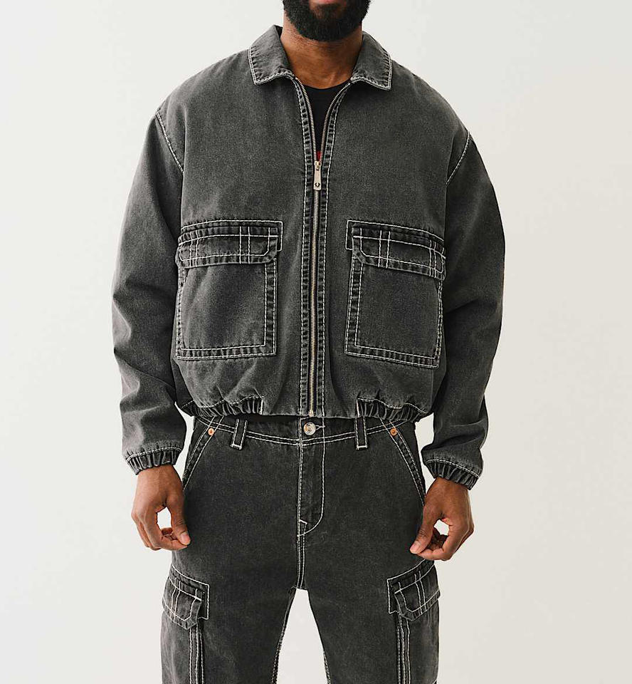 Chaqueta Vaquera de Alta Calidad para Hombre, con Cuello Alto Reversible, Diseño de Letras en la Parte Delantera, Logotipo Personalizado OEM, Gran Venta