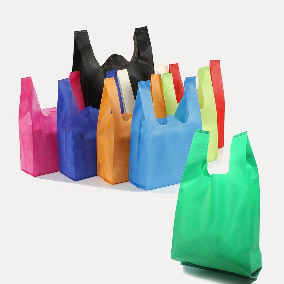 Camiseta con Logo personalizado impreso, no tejido, suave, ecológico, promoción de comestibles, bolsa de supermercado, reutilizable, bolsa de compras, gran oferta