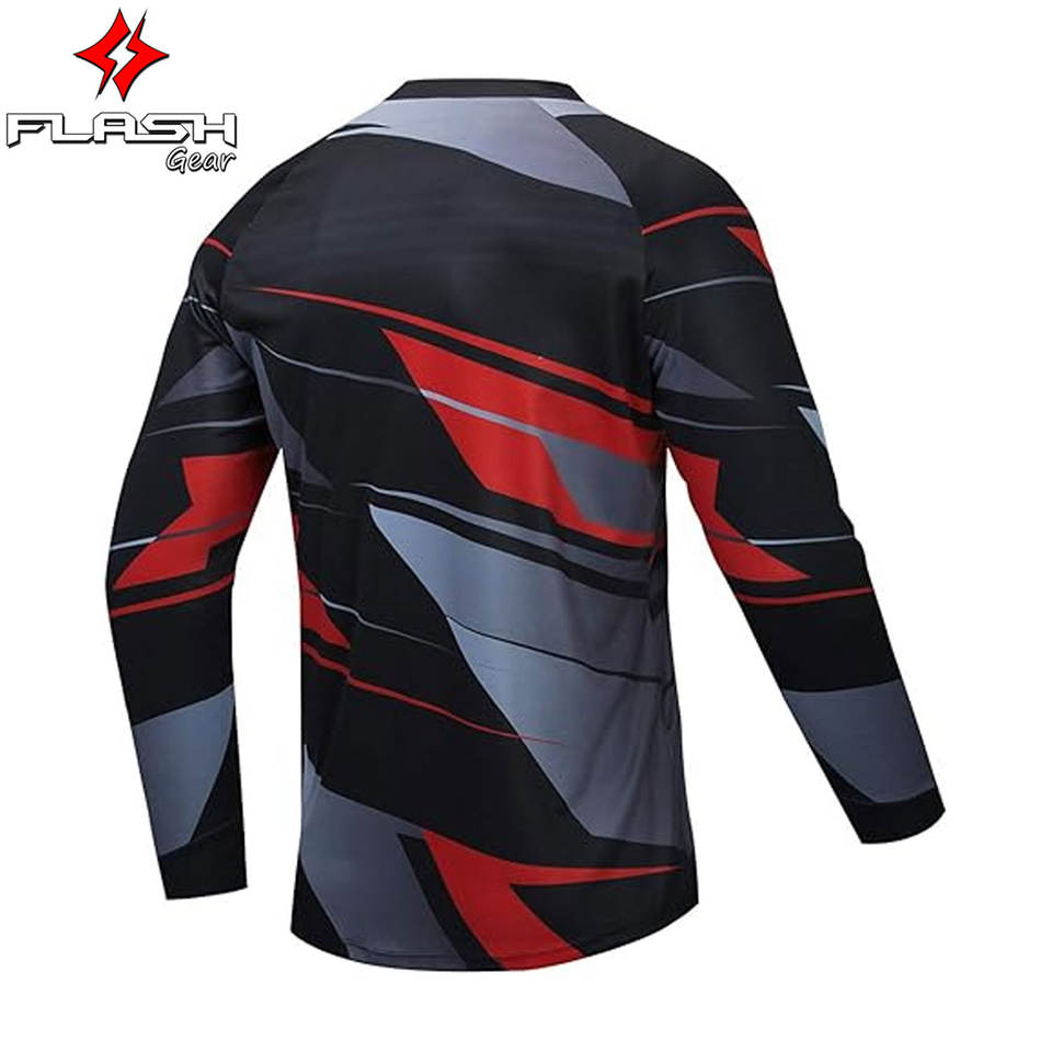 Gran oferta, impresora de sublimación de manga larga personalizada, camisetas de colores brillantes, deportes de motocicleta BMX, diseños personalizados vibrantes duraderos