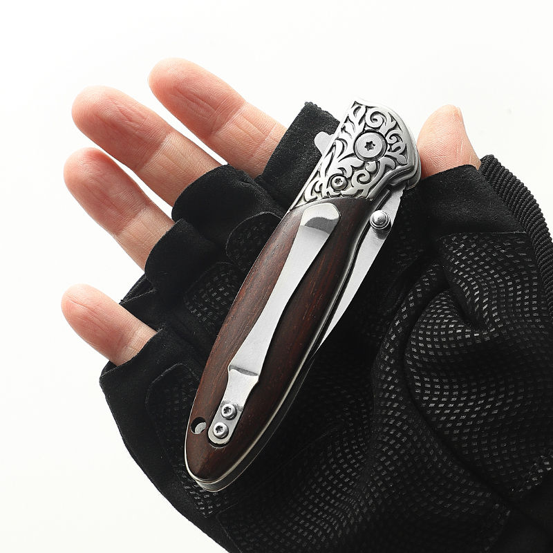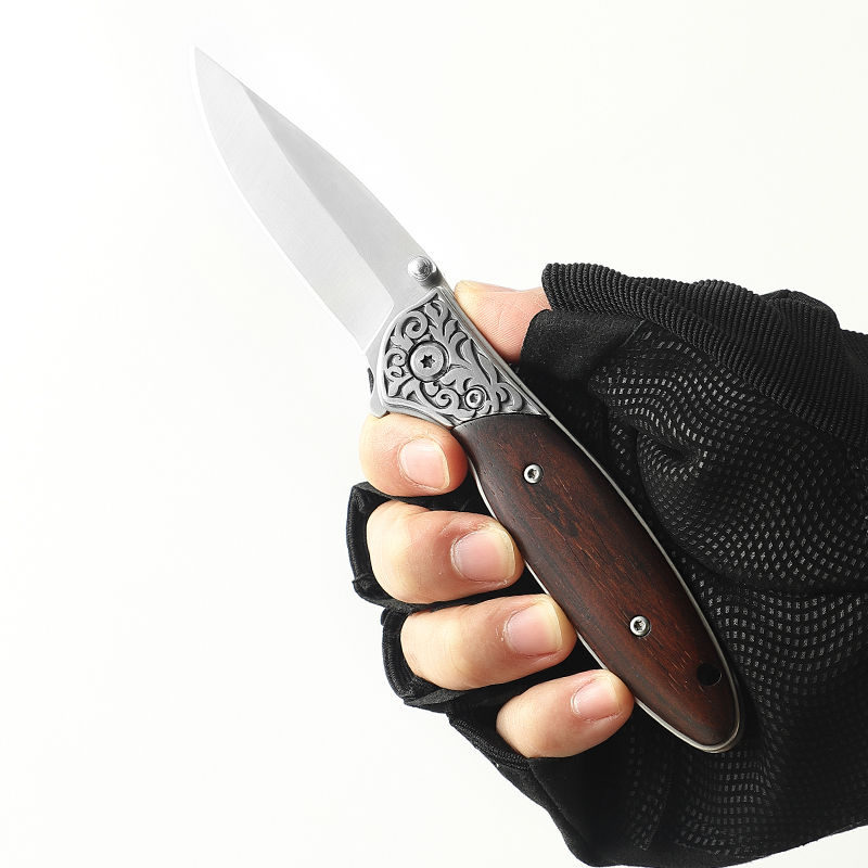 Gran oferta, cuchillo plegable de acero 9Cr18 hecho a medida para exteriores con mango de madera, cuchillo de bolsillo clásico de alta dureza con soporte OEM