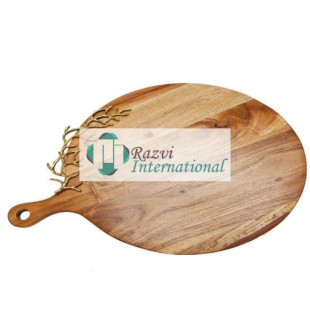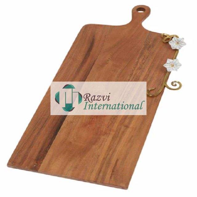 Gran oferta, carnicero orgánico personalizado, cocina, gran mango grueso, extremo de madera, grano, tabla de cortar de madera con flor dorada