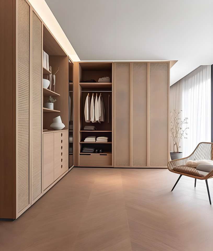 Gran oferta, armario de madera tejido de ratán de tamaño personalizado, muebles de dormitorio, puerta de ratán, armario plegable