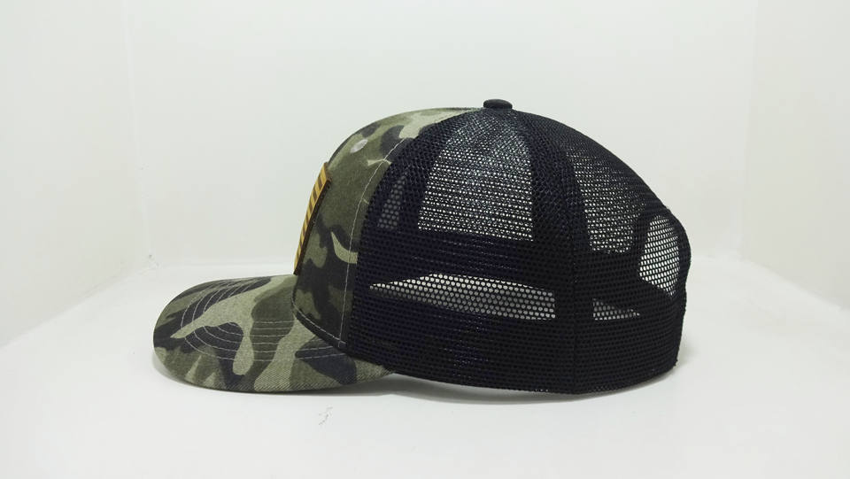 Gran oferta de sombreros de camionero de camuflaje con parche grabado de cuero personalizado para hombres y mujeres, gorras deportivas traseras de malla de alta calidad, sombreros de Vietnam