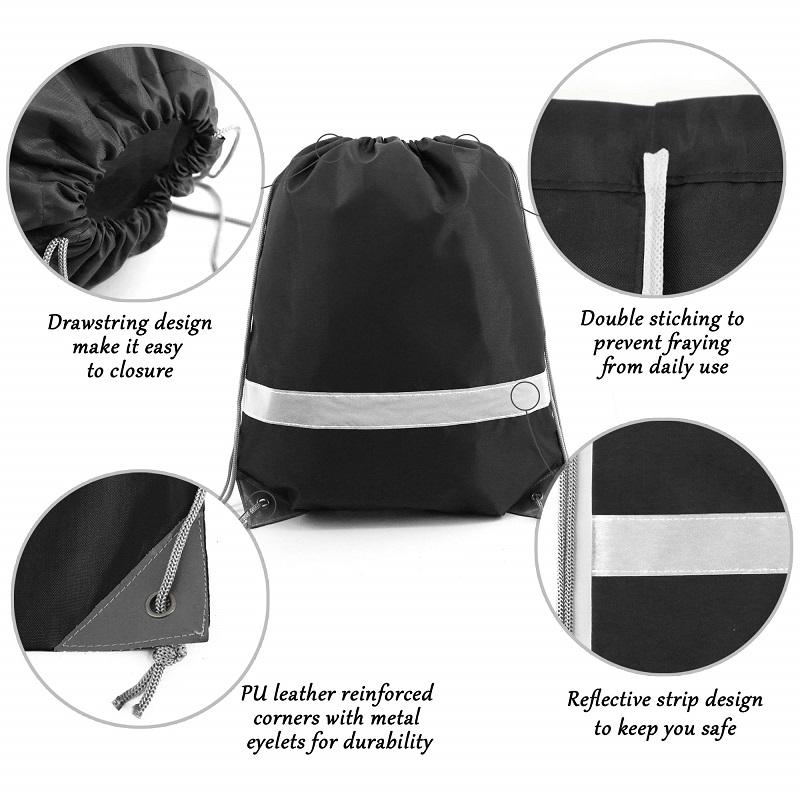 Gran oferta, logotipo personalizado, reutilizable, poliéster y nailon, bolsa con cordón reflectante, patrón de letras impermeable, para ir de compras
