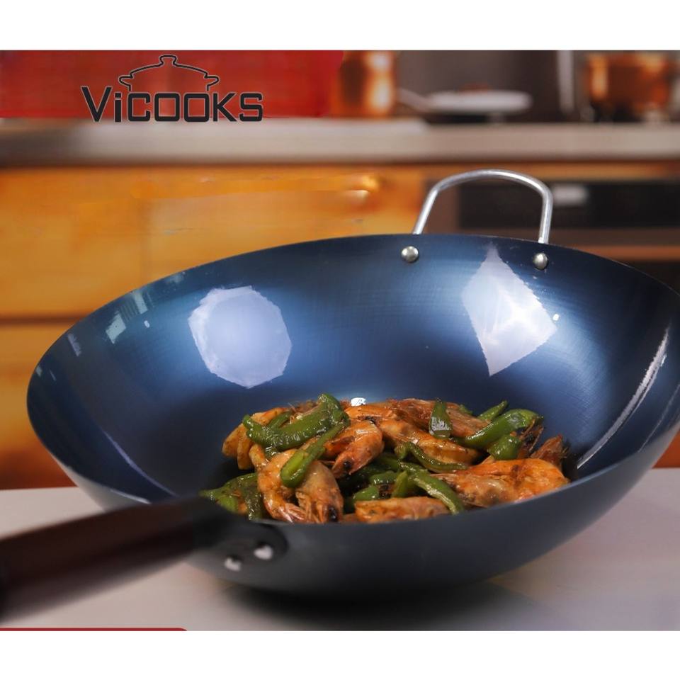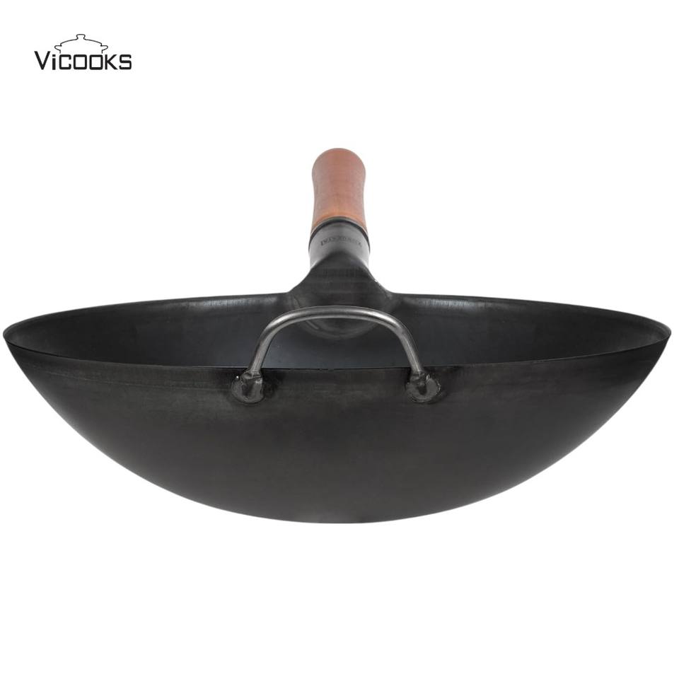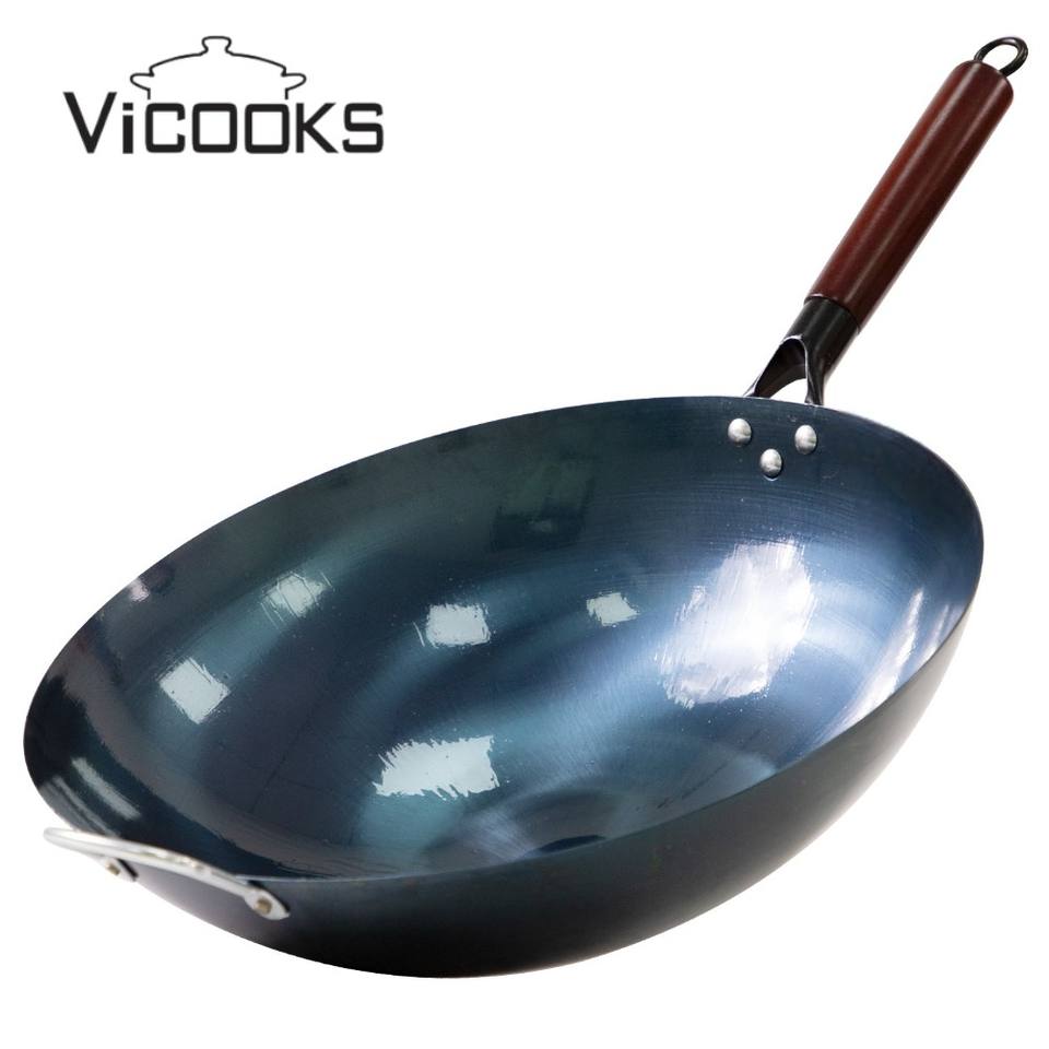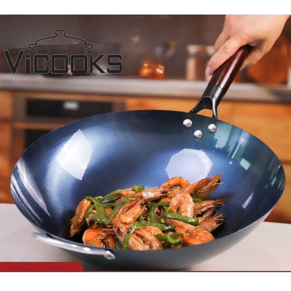 Venta caliente personalizada cocina tradicional Wok Azul acero al carbono pre-sazonado Wok Pan