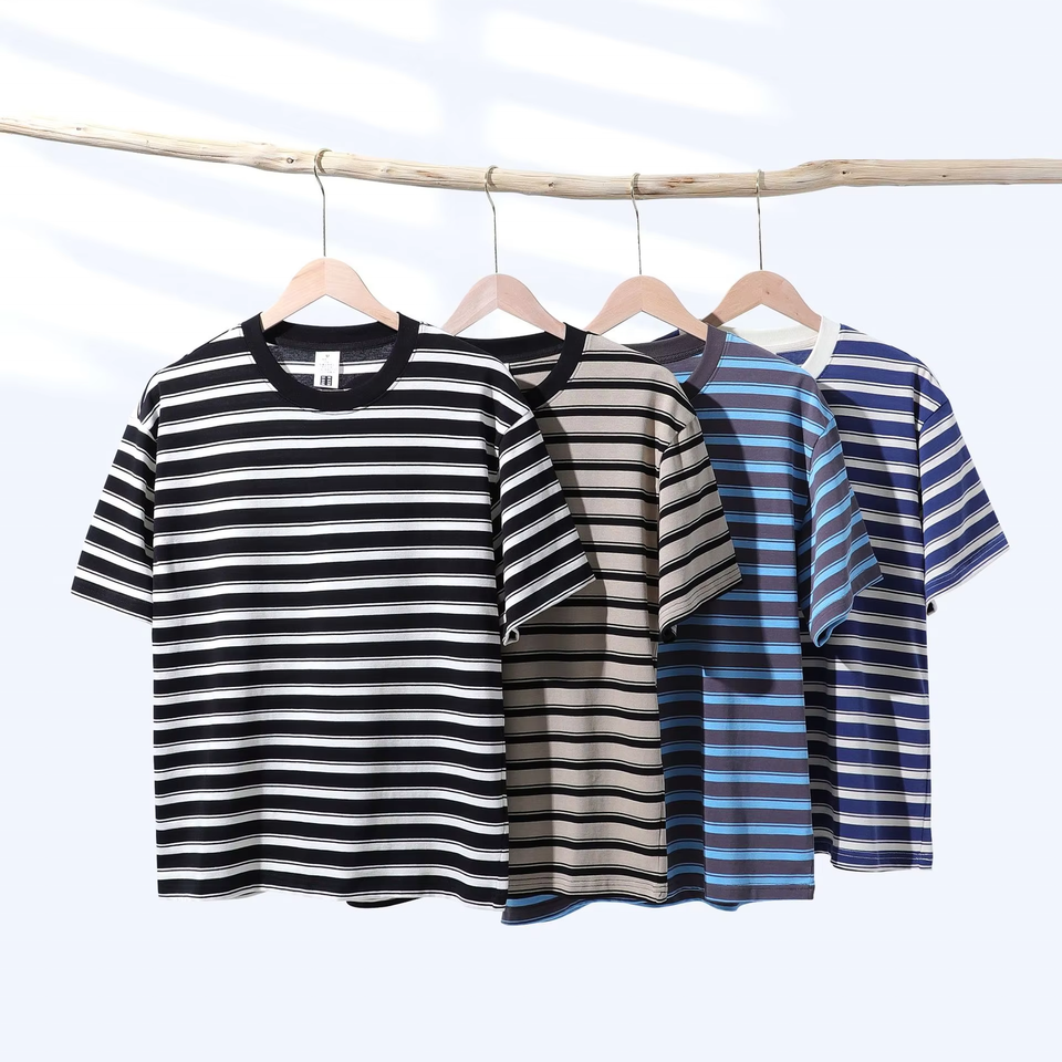 Camiseta a Rayas Daily's en Oferta, Estilo Holgado, Personalizable, Todas las Tallas, Algodón Puro 250gsm, Rayas Anchas, Cuello Redondo, Suave, Retro, para Viajes